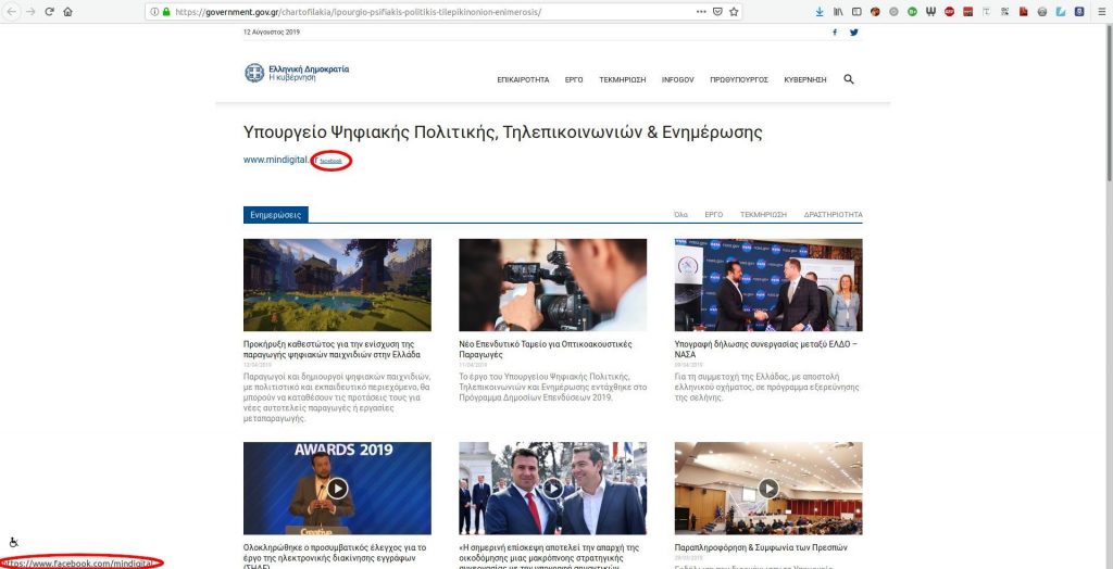 Τέλος, το Υπουργείο Ψηφιακής Πολιτικής, Τηλεπικοινωνιών και Ενημέρωσης, σήμερα Υπουργείο Ψηφιακής Διακυβέρνησης: mindigital.gr, του οποίου η ιστοσελίδα είναι υλοποιημένη με λογισμικό ανοικτού κώδικα, χρησιμοποιεί διαφορετικό λογισμικό από αυτά της κυβέρνησης της Ελλάδος, και πιο συγκεκριμένα Joomla.